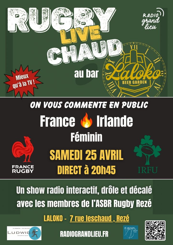 Le Rugby Live Chaud commentera le match France vs Irlande Féminin – Samedi 25 avril en direct du bar LALOKO à Rezé !